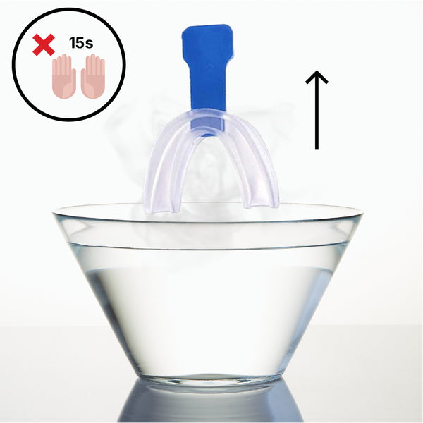 Plaats de anti-snurkbeugel nu gedurende 2 minuten in het glas met koud water. Laat het spateltje nog zitten.